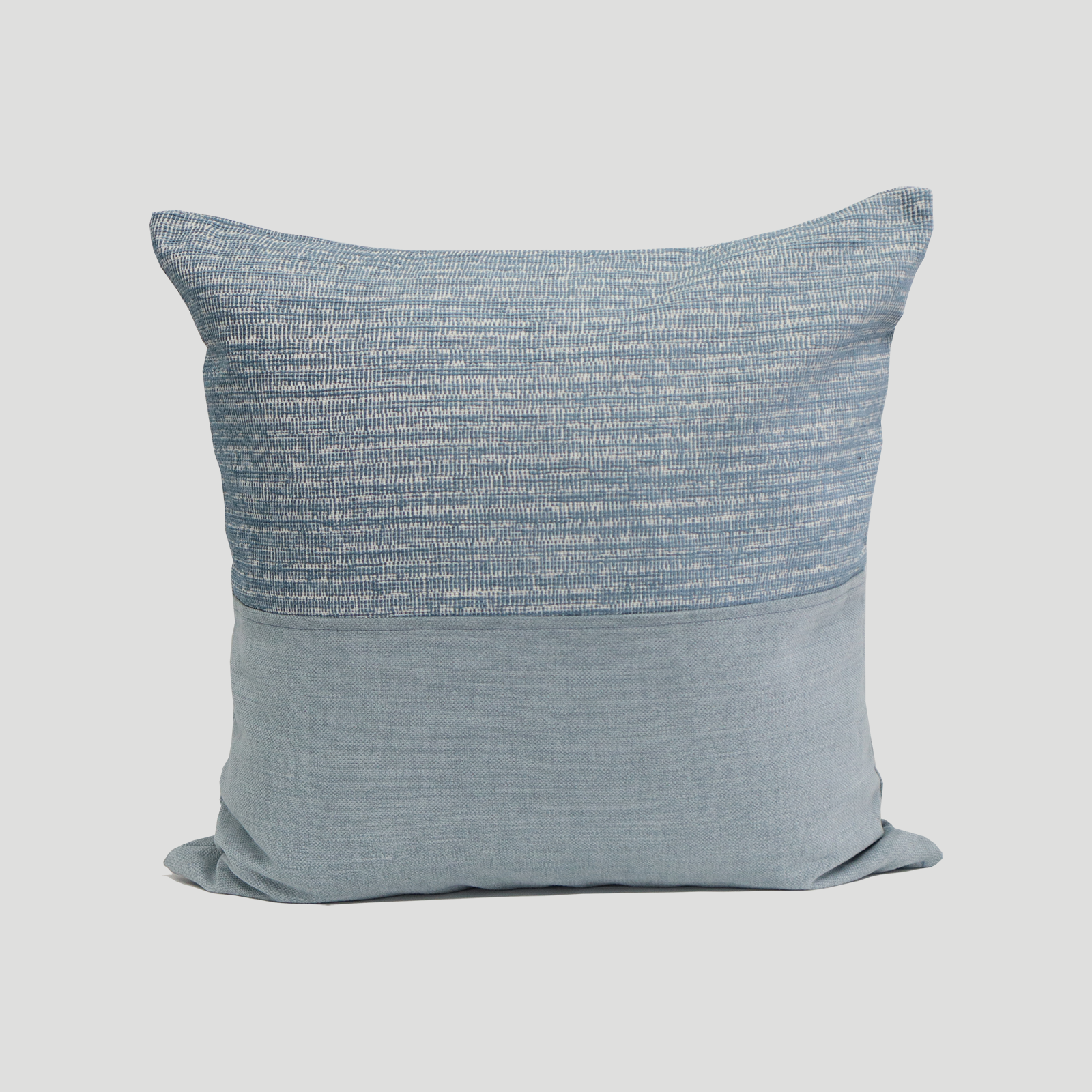 Gema is a harmoniously crafted pillow combined of white and light blue weaves with a delicate textured pattern.
